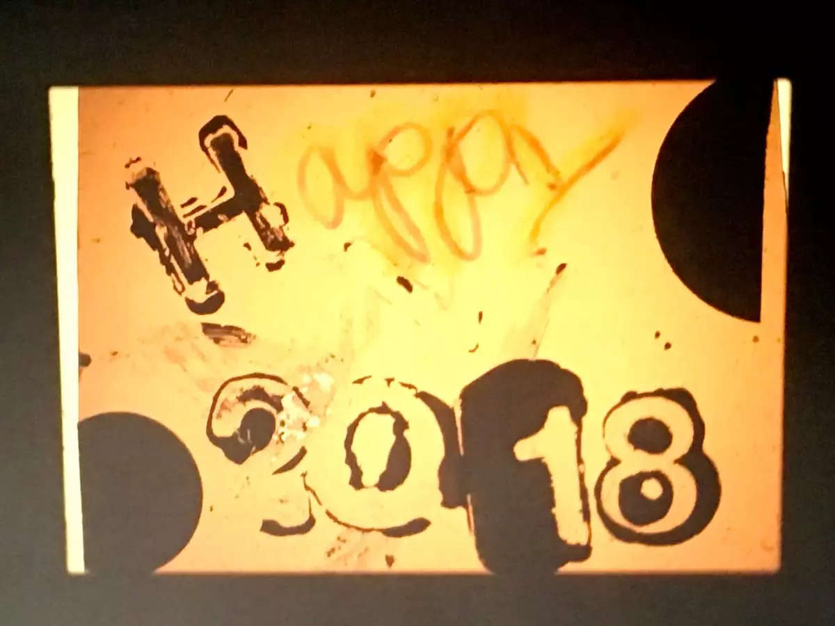 Die erste Aufgabe: Wir zerkratzen die kleinen Stückchen Diapositivfilme. Was kratzen wir denn hinein? Muster, Bilder, Buchstaben, Texte: Alles ist erlaubt. In kürzester Zeit entstehen viele kleine Kunstwerke. Der Diaprojektor bringt sie nachher groß heraus. Dabei zeigen sich Effekte, die beim Arbeiten im Kleinen zufällig entstanden sind. Blau-Weiß-Schattierungen verleihen einem einfachen Stern Tiefe, und lassen ein Muster kunstvoll erscheinen.