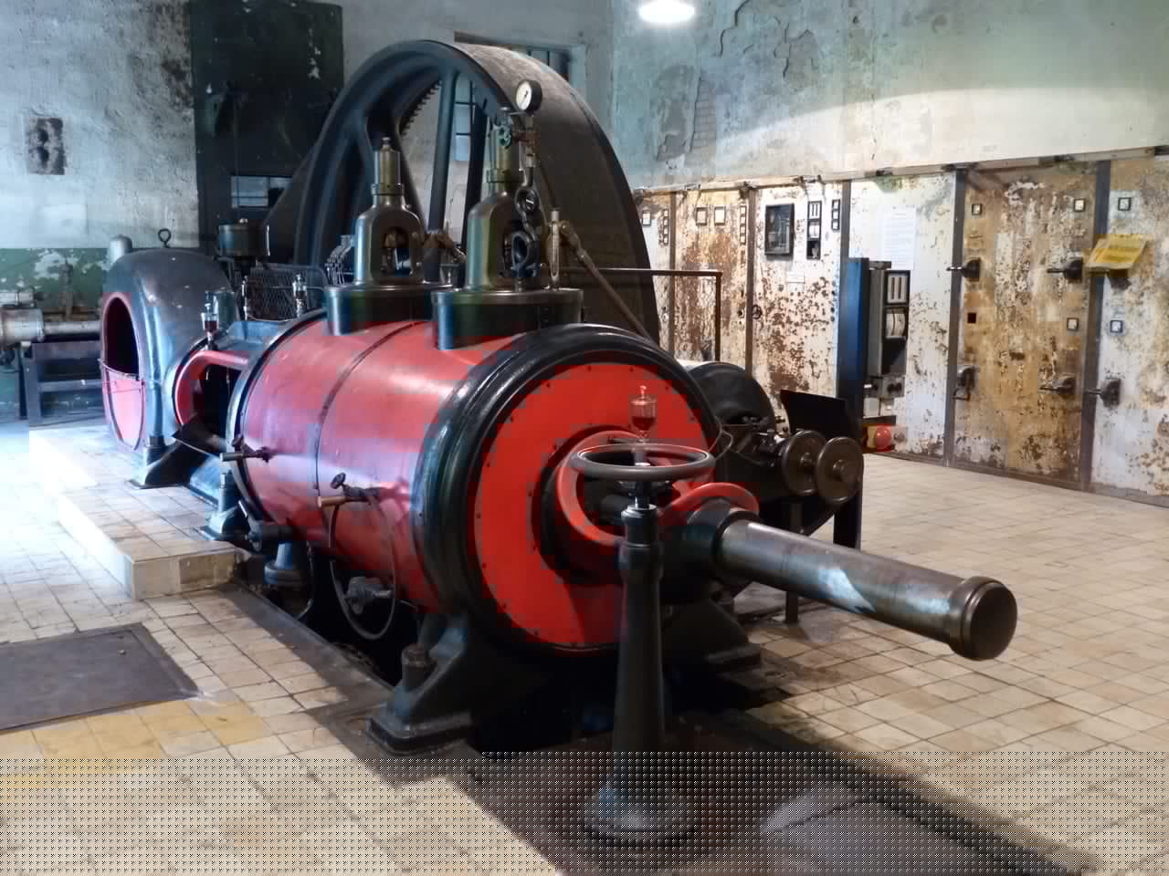 An der vierten Station ist das Highlight eine riesige Dampfmaschine, die manchmal auch in Betrieb vorgeführt wird. Dann folgt ein Aussichtsturm.