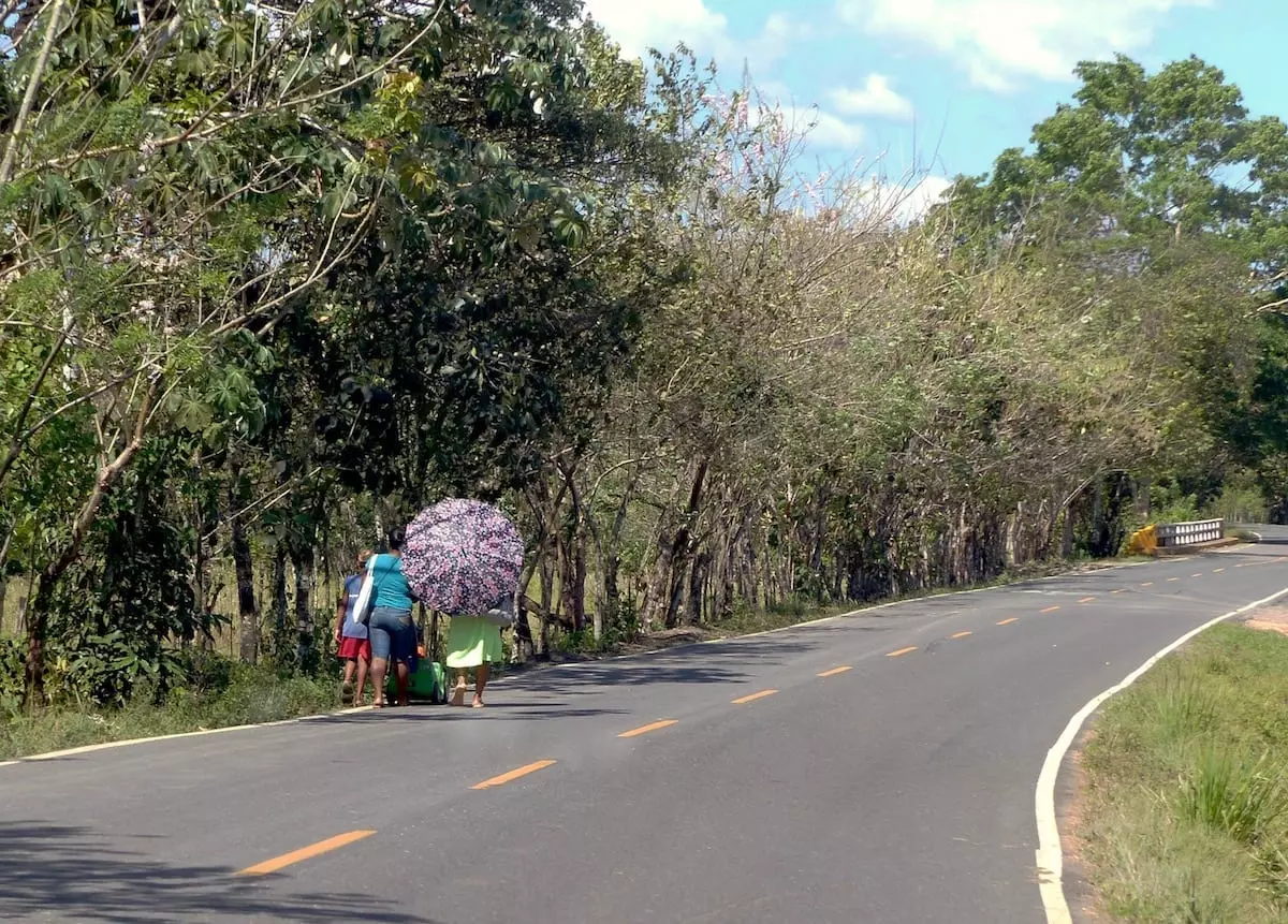Den Wasserfall könnt ihr nicht verpassen. Der ist direkt an der Strecke. Man sieht ihn, wenn man bereits über den höchsten Punkt hinaus ist und es wieder bergab geht, nach einer Linkskurve, in der rechts Platz zum Parken ist. Von dort habt ihr auch Ausblick auf einen (Stau-?)See. Vorher kann ich euch noch das Café etwa am höchsten Punkt der Strecke empfehlen – da unser Besuch aber schon ein paar Jahre her ist, weiß ich gar nicht, ob das noch so gut ist. Das „Stelzendorf“ liegt auch direkt am Weg. Da gibt es aber außer ein paar Stelzen-Häusern nicht viel zu sehen. Einen kleinen Einblick in das Leben in einem indigenen Dorf bekommt ihr, wenn ihr die Führung auf der Öreba Kakaoplantage (Chocolate Farm) mitmacht. Die fanden wir wirklich toll.